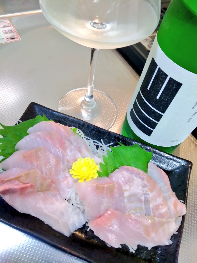 おぅ~!淡泊ながらもまろやかに上品な旨味にしっかりとしつつも程よい歯ごたえのある石鯛にこの山三を合せると、いやぁ~旨んまいね~!石鯛の上品な旨味にほどよく寄り添ってくれますね~。主張しすぎない甘旨味に爽やかな酸味が上手くバランスをとっているかのよう。ひとごこちの味わいをうまく生かしてる感じかなぁ。