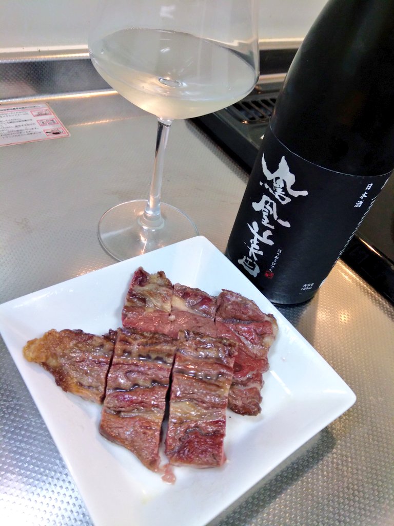 うんまいね!ジューシーな肉汁と弾力ある歯ごたえの肩ロースにこの鳳凰美田を流し込むと旨味がグッと増しつつも、その旨味をスッと心地良く切ってくれます。肩ロースまでいかずとも牛モモ肉、もしくは豚トロや鶏肉のボンジリなんかはどうかな~。