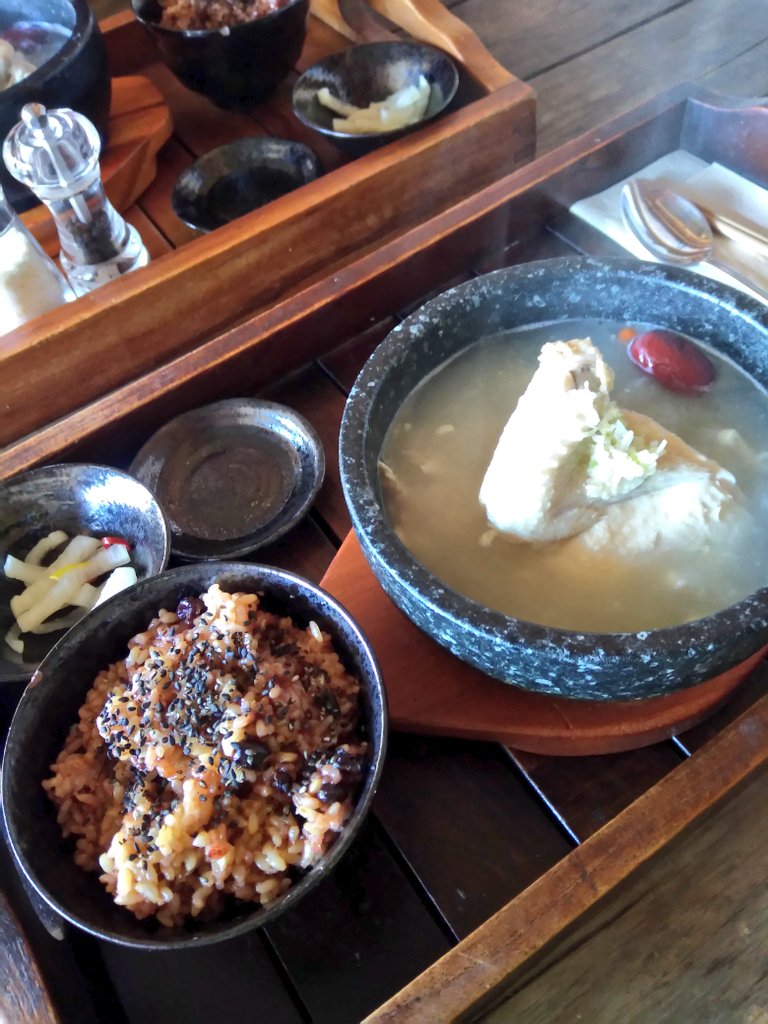 ランチはポニーさんのいるカフェのちょい先にある百笑の台所で酵素玄米と熱々の参鶏湯を頂きました。
