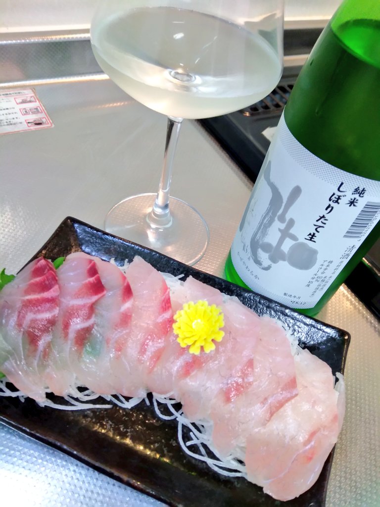 いやぁ旨いっすね!黒鯛のやや淡泊ながらも新鮮な旨味にこのかぜやわらかを流し込むと、程よく合いますね。若干かぜやわらかがしぼりたてだけあって黒鯛があたり負けする印象もありますね。