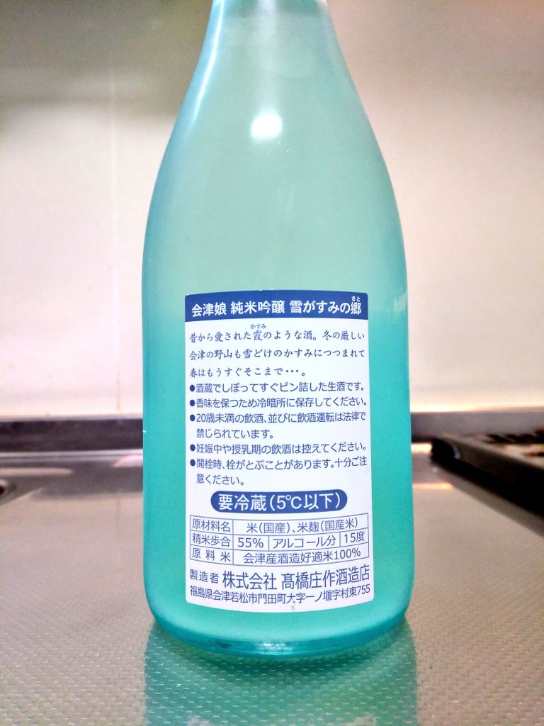会津娘 純米吟醸 うすにごり 雪がすみの郷 です。こちらはぼちぼち行く酒屋さんで購入してきました。雪がすみの郷は昨年の1月にいただいていますね。こちらは例年1月にリリースされるのですが、ことしは12月にリリースされましたね。