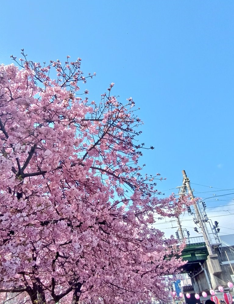 帰路立ち寄った三浦海岸駅では綺麗な早咲きの桜が咲いていました。