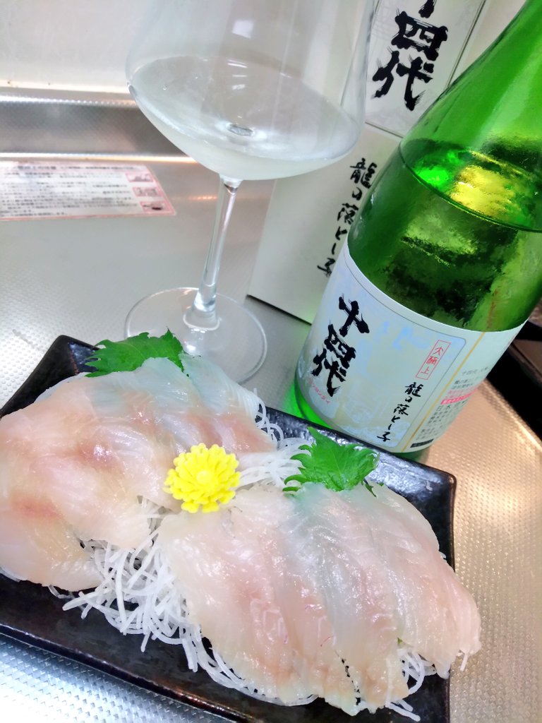 グラスを回すとスッと葡萄やマスカットのような爽やかさ。口に含むとフレッシュに爽やかな口当たりから柔らかく蕩けるような甘旨酸味。余韻はスッと爽やかな苦酸味で心地良くキレていきます。いやぁ~まぁこりゃデリシャスにエレガントなジューシーさですね~。このリンゴや葡萄を思わせるようなジューシーさにキレの鋭さ。2~3杯ほど飲み進めていくとあぁ!やっぱりこの味わいよね!この惹き付けるような甘味!この甘味の表出具合はやはり十四代大吟生酒。丸く柔和にやや強めな甘味にスッキリとした爽やかな酸味のバランス感。飲み口から後味までシームレスに纏まっている具合はさすがですね。
