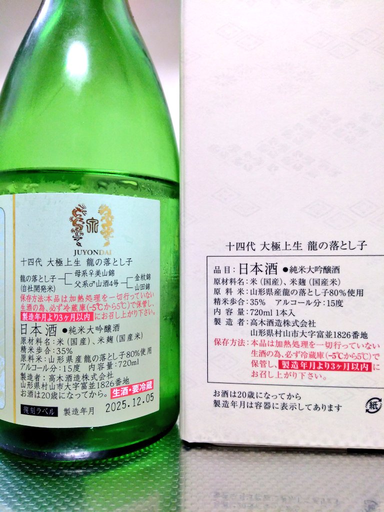 山形県 十四代 大極上生 龍の落とし子 ~復刻ラベルの佇まい~