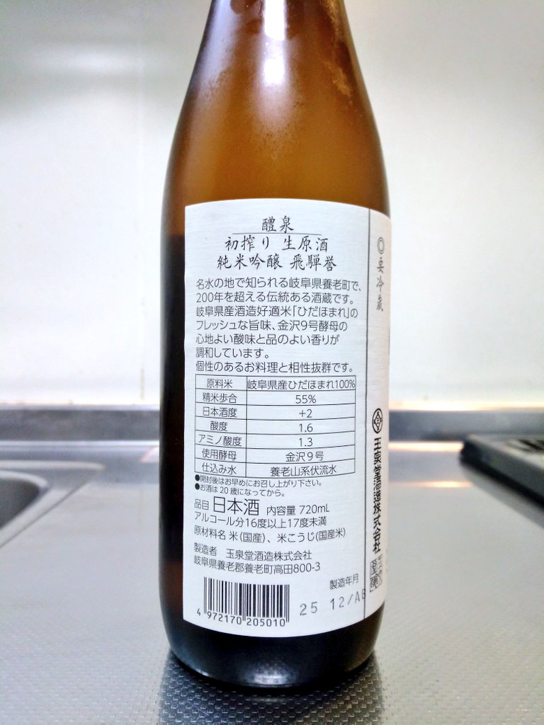 岐阜県 醴泉 初搾り 生原酒 純米吟醸 飛騨誉 ~美麗な旨味弾ける一本~