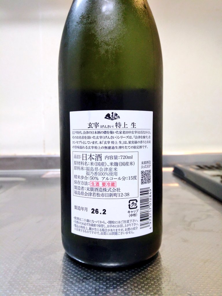 玄宰 特上 生です。こちらは今月の頭に多摩市の小山商店さんで購入してきた一本です。玄宰は先月特別純米の生酒を飲んでいますね。今回は特上の生酒です。この特上の生酒は今年初リリースの一本ですね。購入に行った際もみなさん次から次へと手に取っていました。